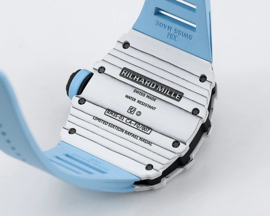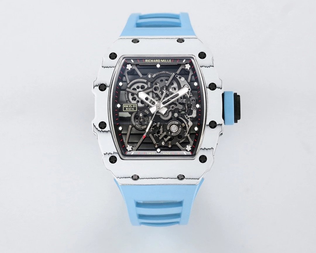 Richard Mille 42mm RM35-01 White Carbon Fiber Light Blue Canvas Strap White Skeletonized